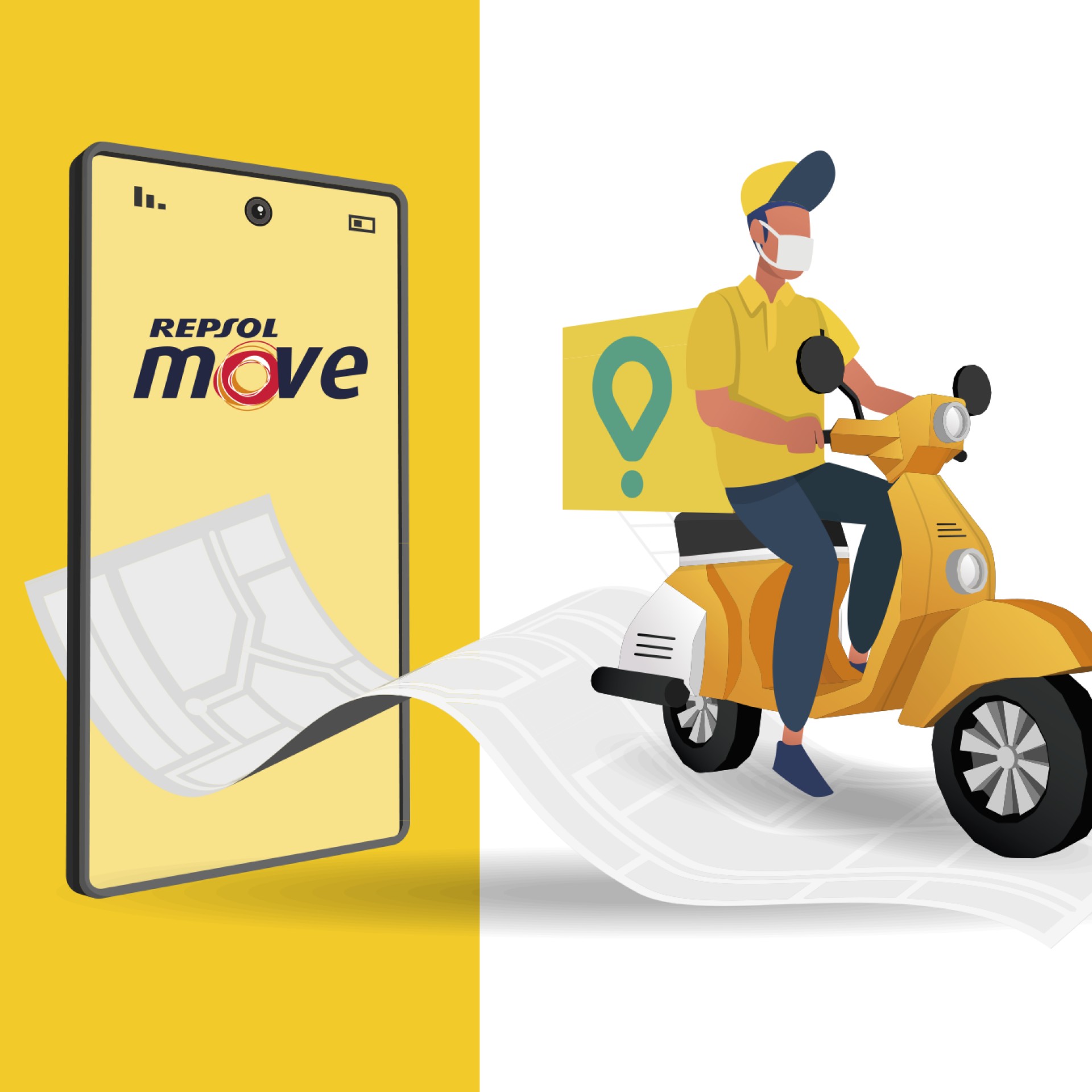 Visual desenvolvido para comunicar a nova parceria Repsol Move - Glovo