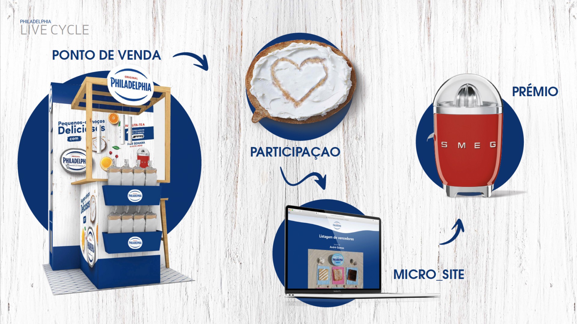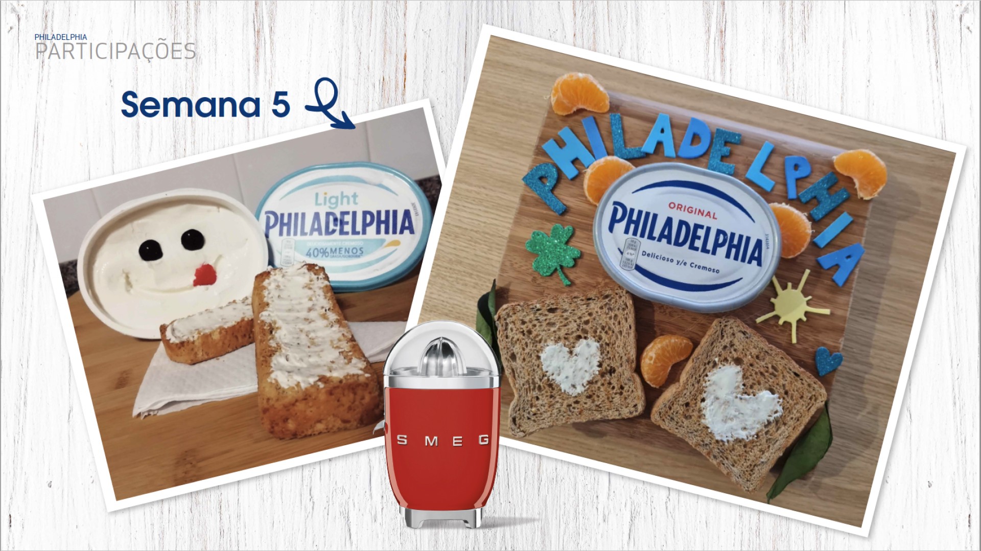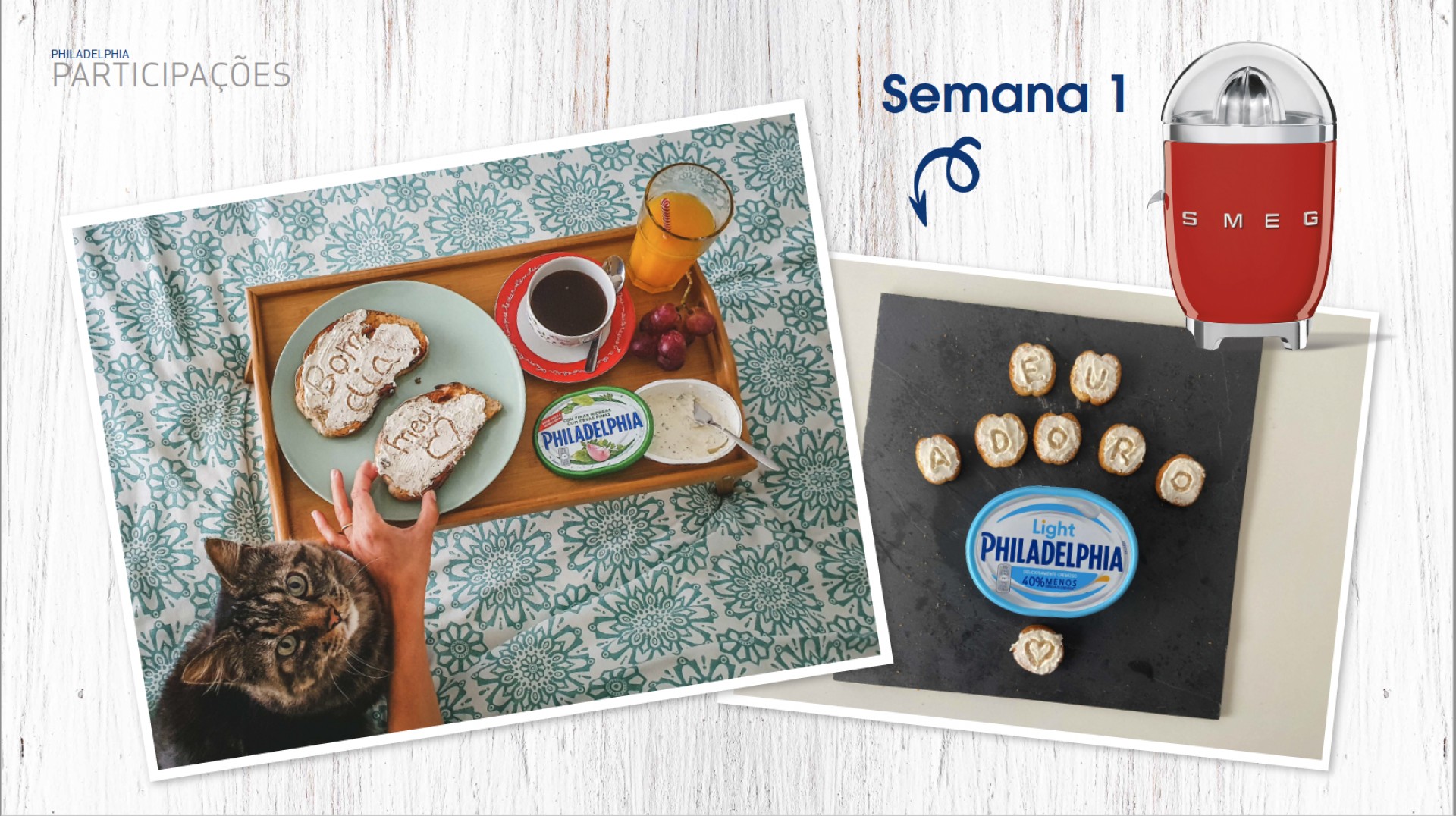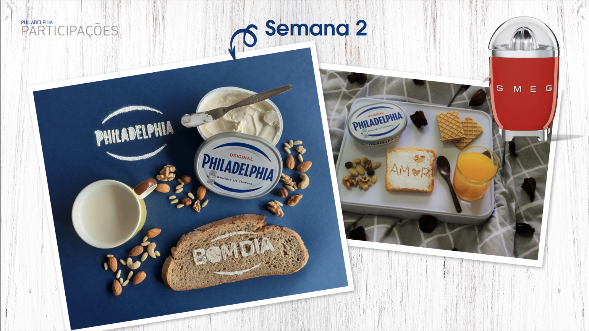 Líder de mercado na categoria de queijo-creme, a Philadelphia quis reforçar a sua presença nos pequenos almoços dos portugueses com um desafio que primasse pela criatividade. Desde cedo foi nossa ideia criar um desafio que posicionasse visualmente a marca dentro do ambiente caseiro a que pertence, e onde a mesma “fala” com frutas, sumos, pão e tostas. Para esse efeito, desenvolvemos um passatempo e respetivas peças de Ponto de Venda a comunicá-lo, onde desafiamos os consumidores a fotografar o seu pequeno-almoço com o twist de escrever uma mensagem com/no o próprio creme. As participações (que primaram mais uma vez por uma grande criatividade e imaginação) foram recebidas num microsite para o efeito, e culminaram na oferta de 10 espremedoras SMEGs para os melhores, e a marca na mesa e nas cabeças dos Portugueses!