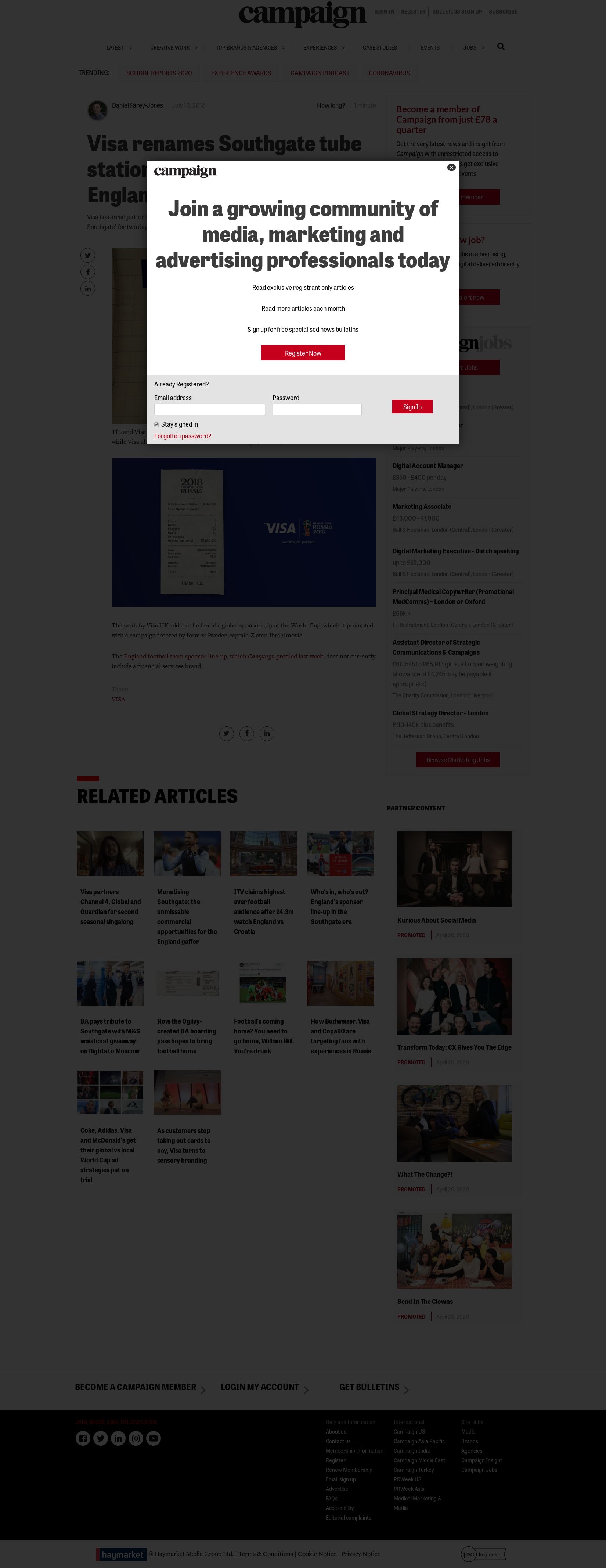 Visa has arranged for Transport for London to rename Southgate tube station in North London as "Gareth Southgate" for two...