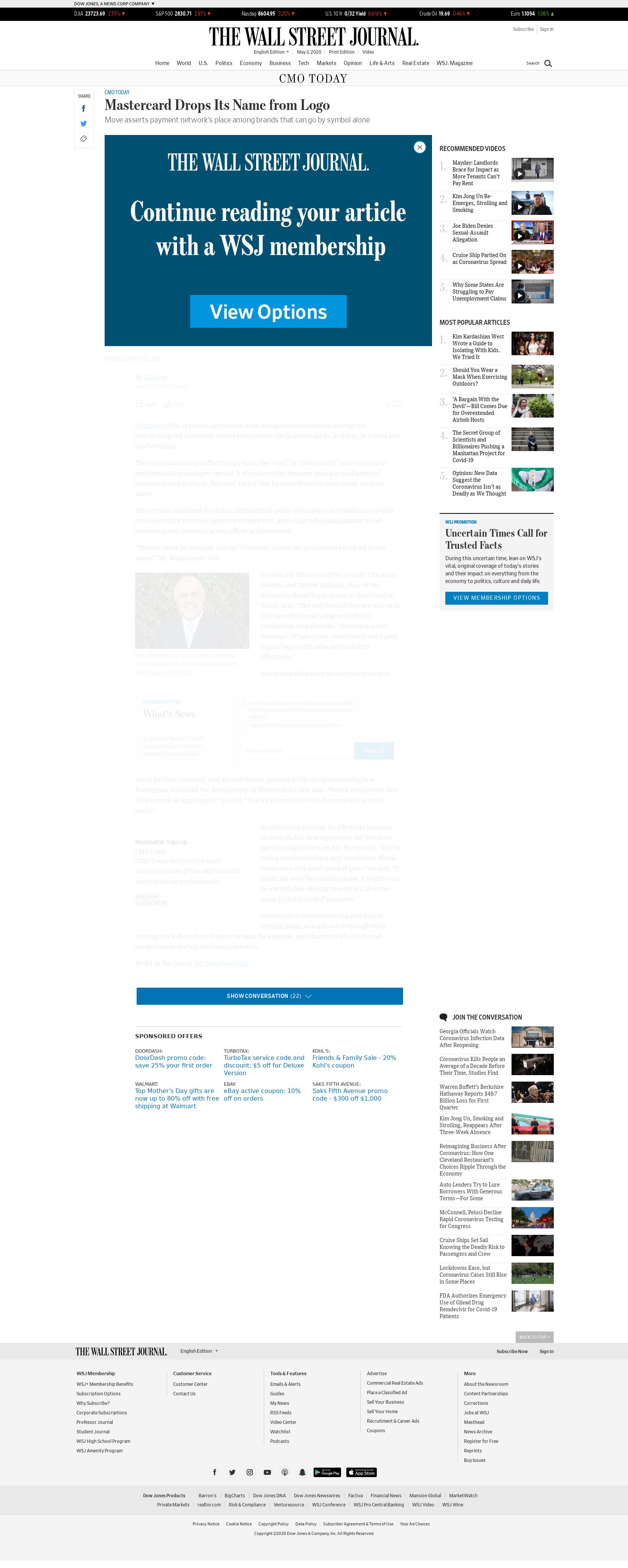 Mastercard is removing its name from its logo in most contexts, leaving the interlocking red and yellow circles to represent...