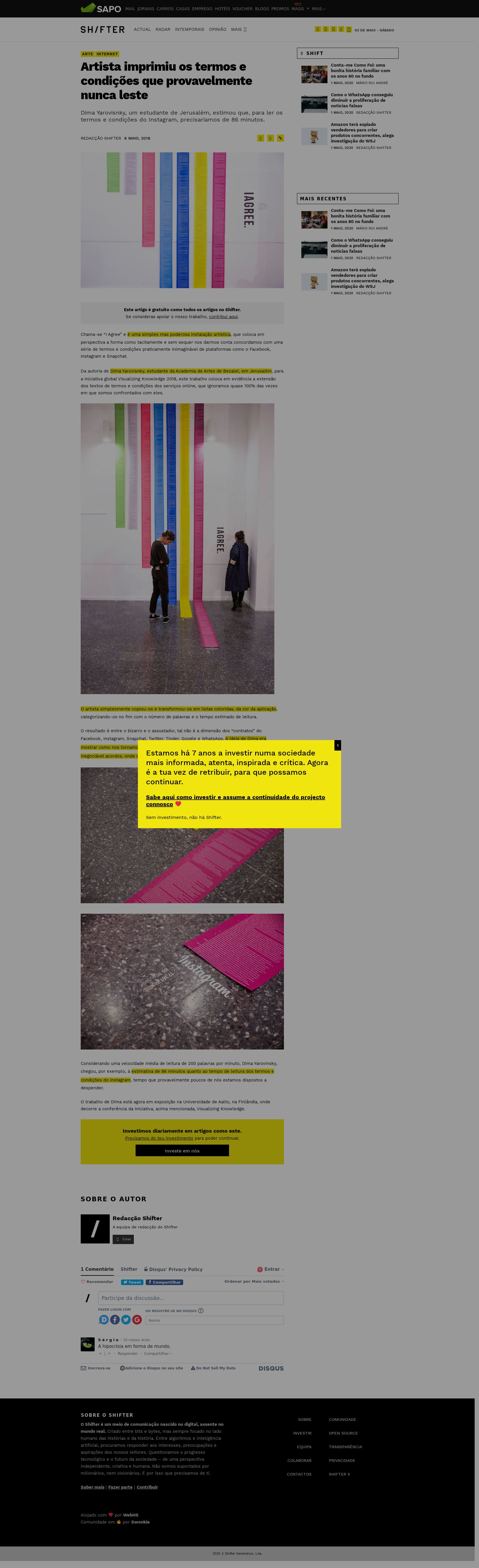 Dima Yarovisnky, um estudante de Jerusalém, estimou que, para ler os termos e condições do Instagram