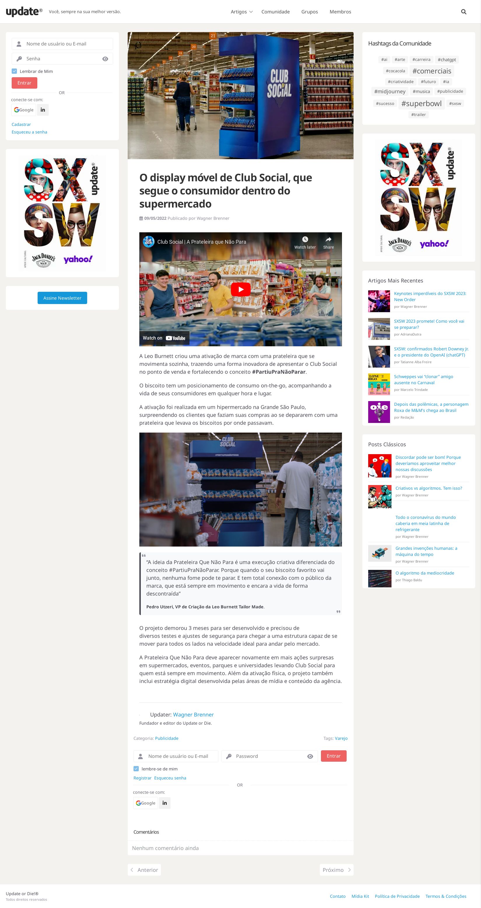 O display móvel de Club Social, que segue o consumidor dentro do supermercado