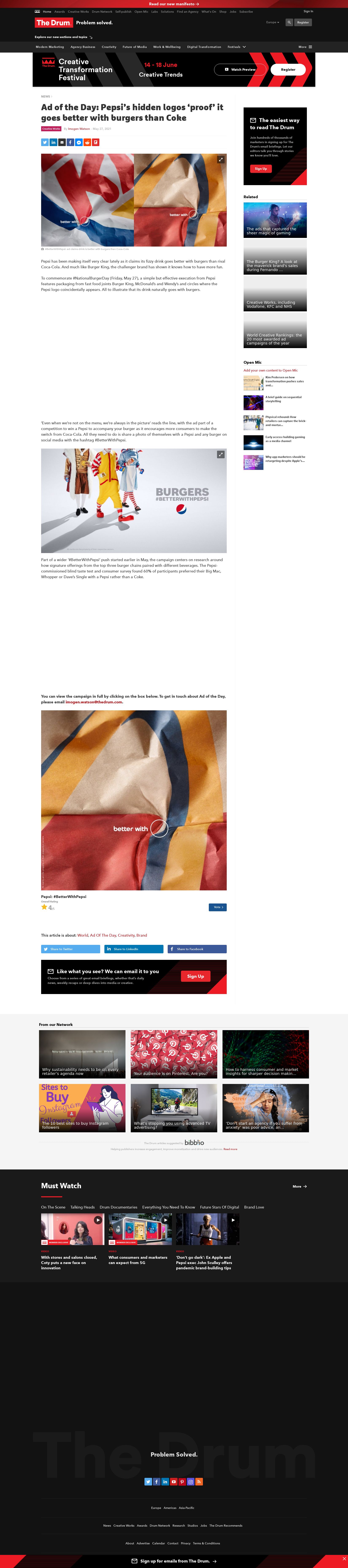 Pepsi has been making itself very clear lately as it claims its fizzy drink goes better with burgers than rival Coca-Cola....