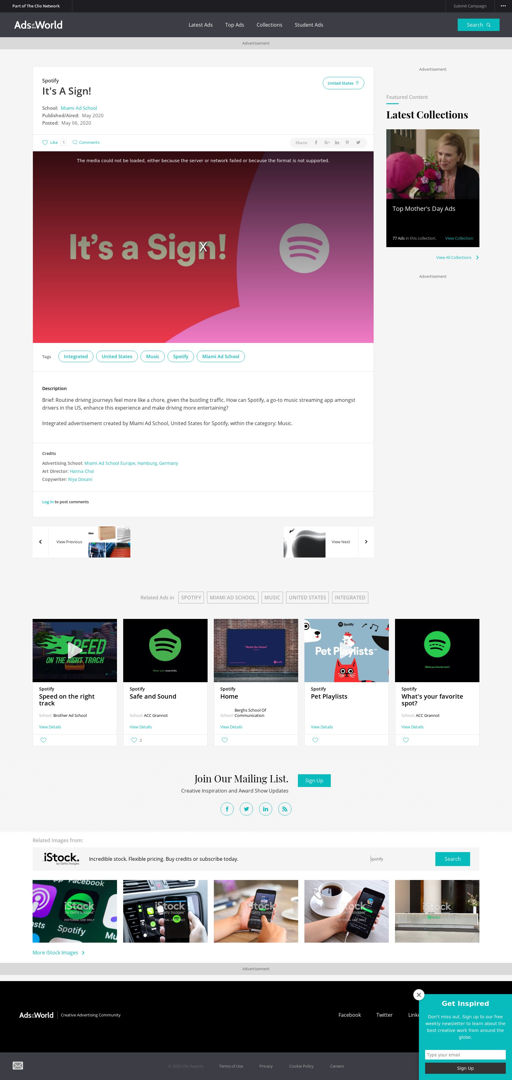 Integrated advertisement created by Miami Ad School, United States for Spotify, within the category: Music.