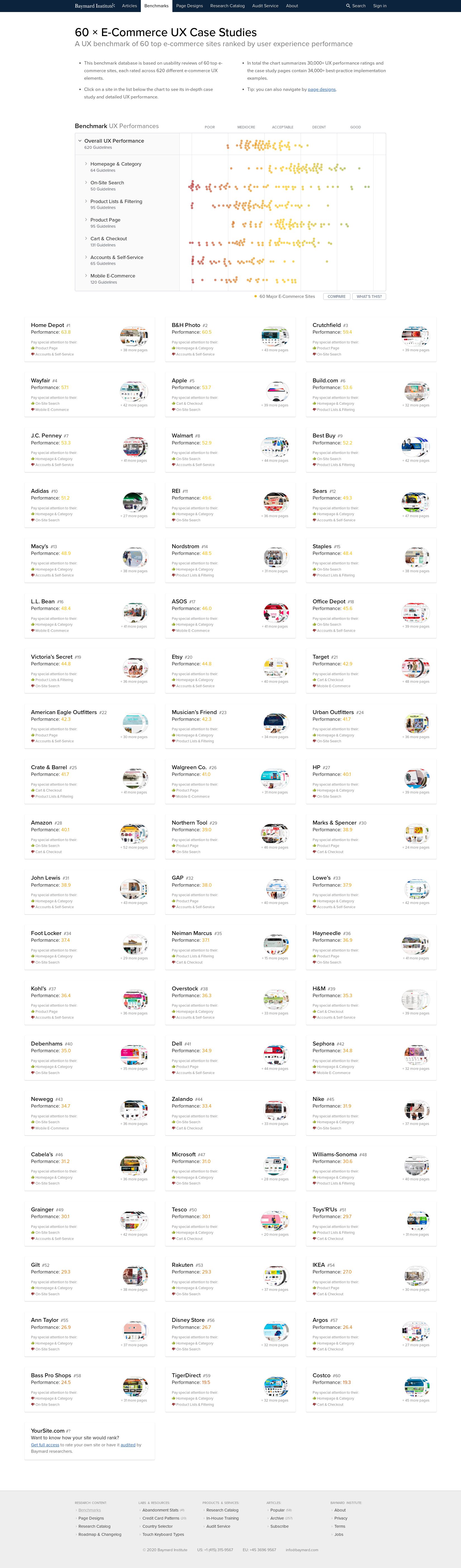 A UX benchmark of 60 top e-commerce sites ranked by user experience performance