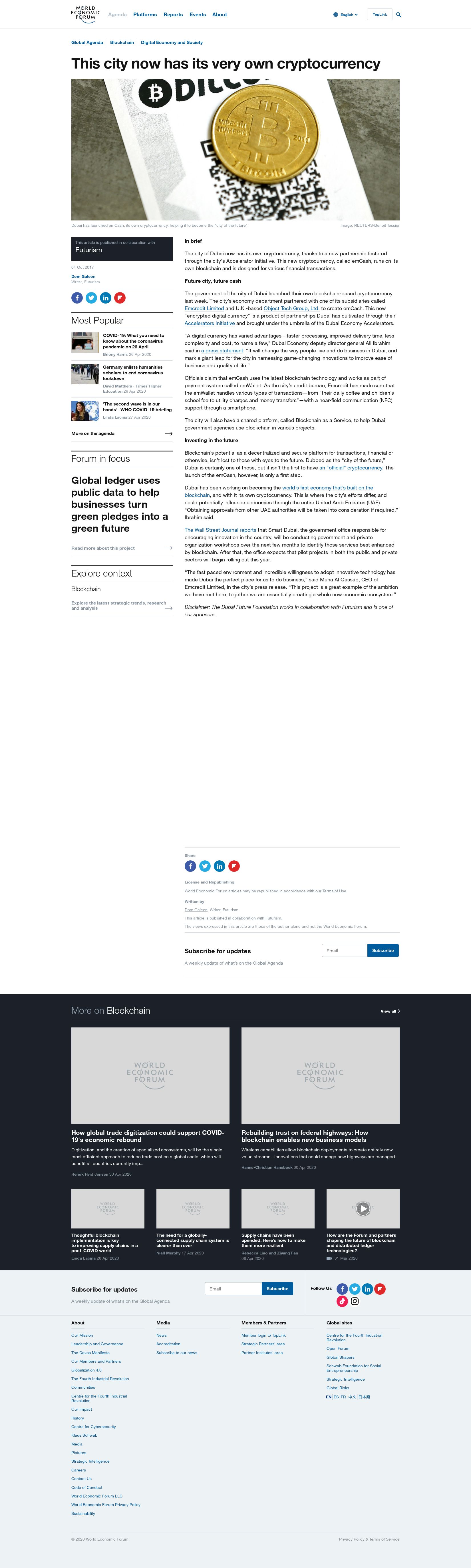 Dubai now has its own cryptocurrency, thanks to a new partnership fostered through the city's Accelerator Initiative.