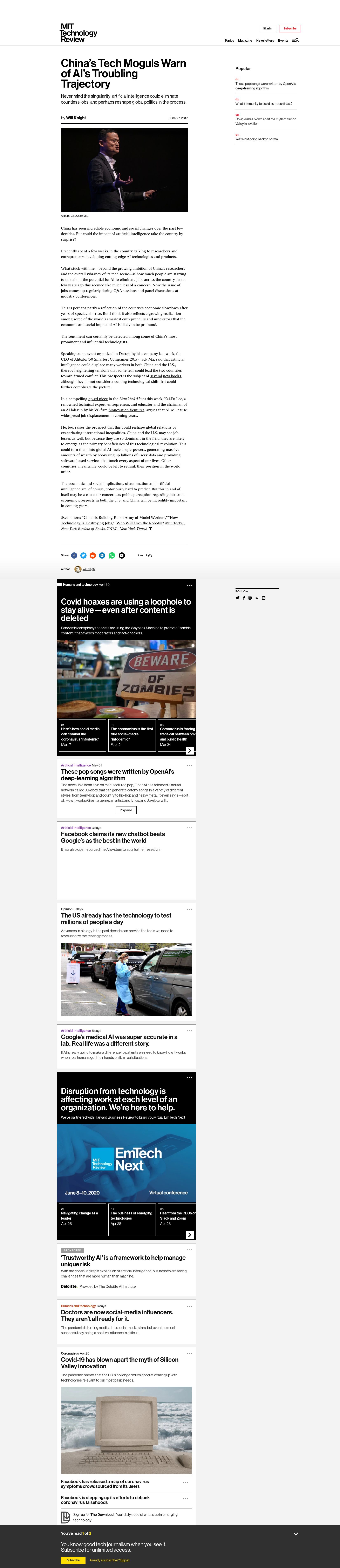 Never mind the singularity; artificial intelligence could eliminate countless jobs, and perhaps reshape global politics in...