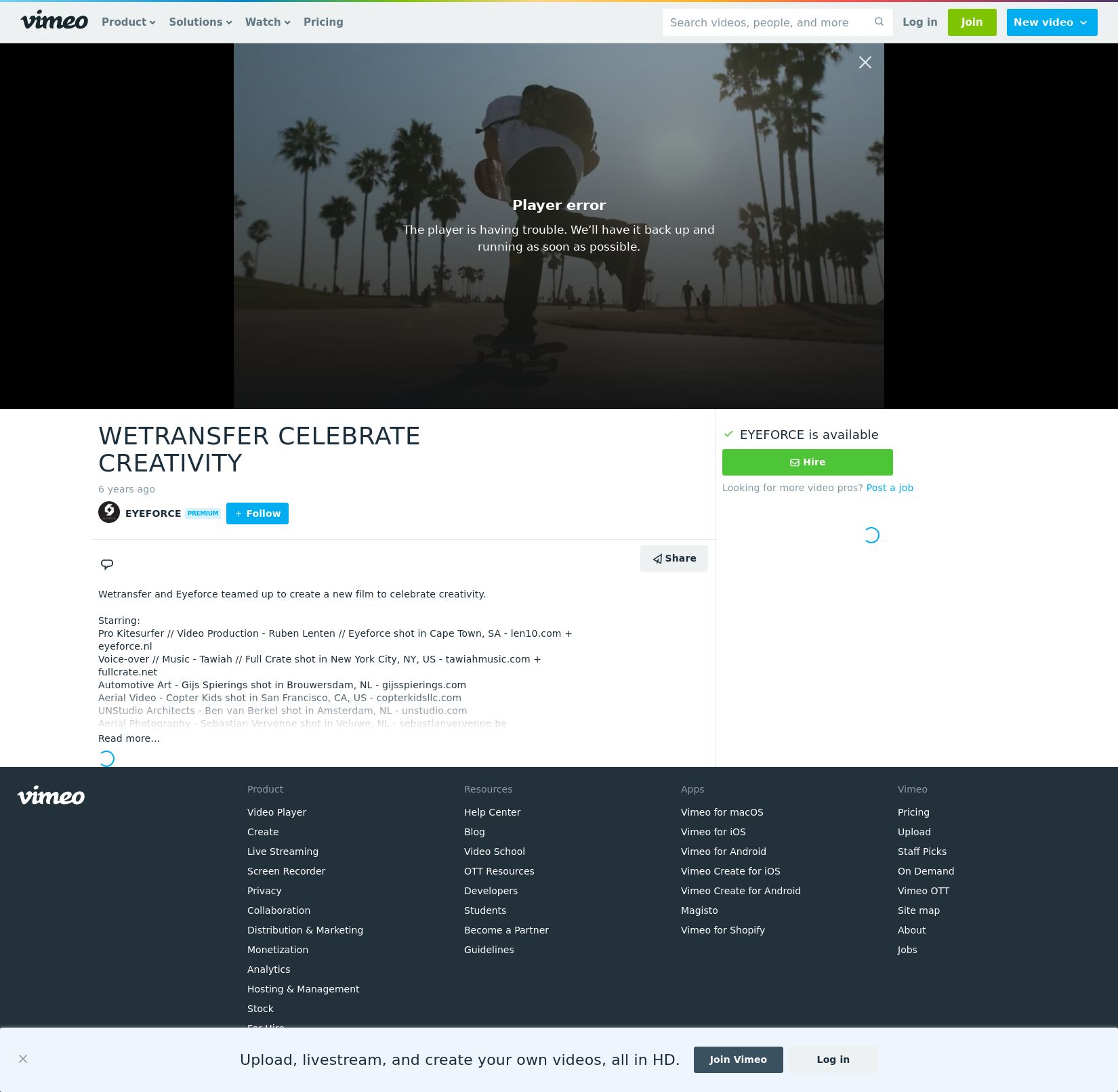 Wetransfer and Eyeforce teamed up to create a new film to celebrate creativity. Starring: Pro Kitesurfer // Video Production...