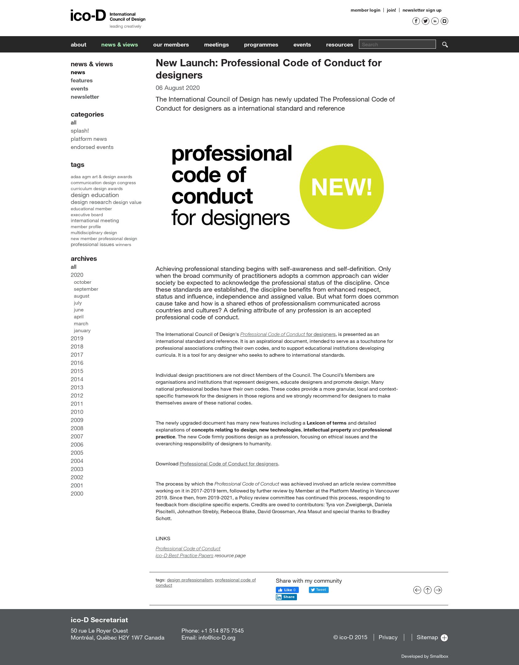 The International Council of Design has newly updated The Professional Code of Conduct for designers as a international standard...