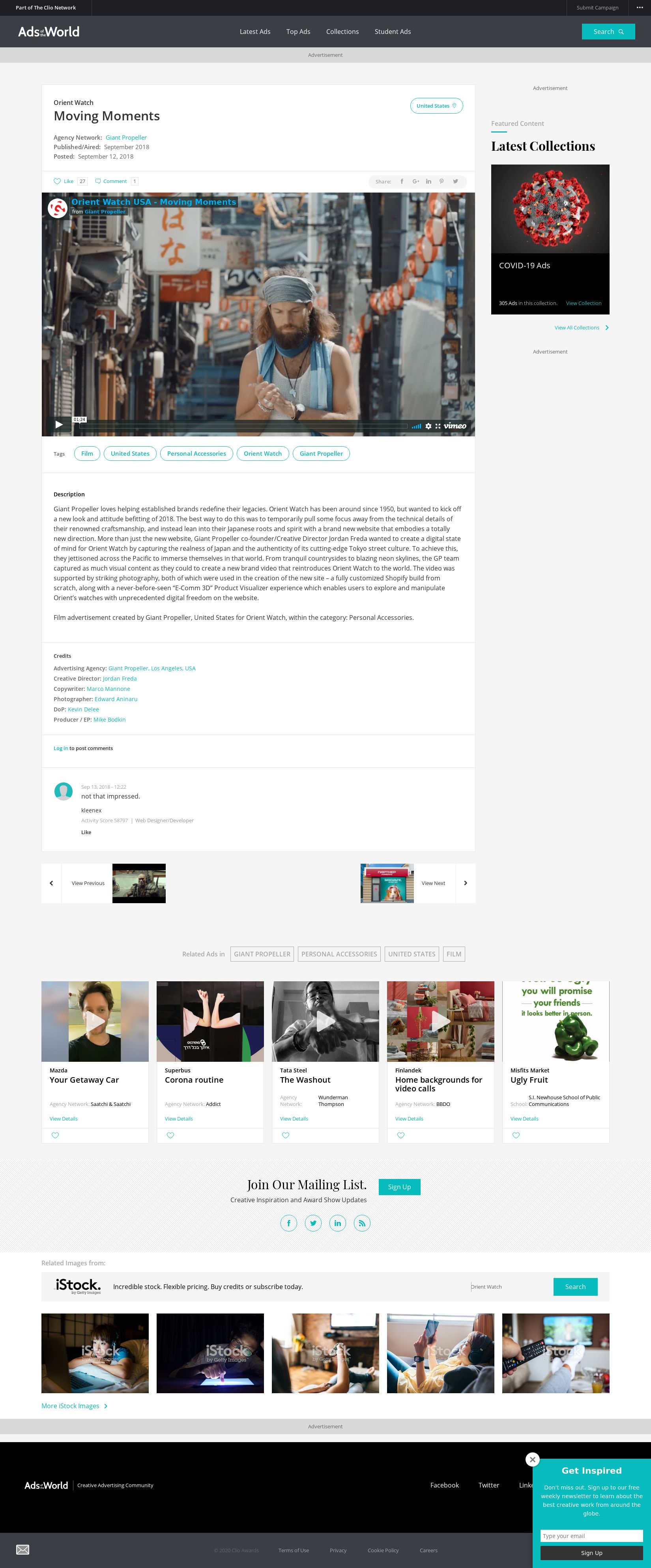 Film advertisement created by Giant Propeller, United States for Orient Watch, within the category: Personal Accessories...