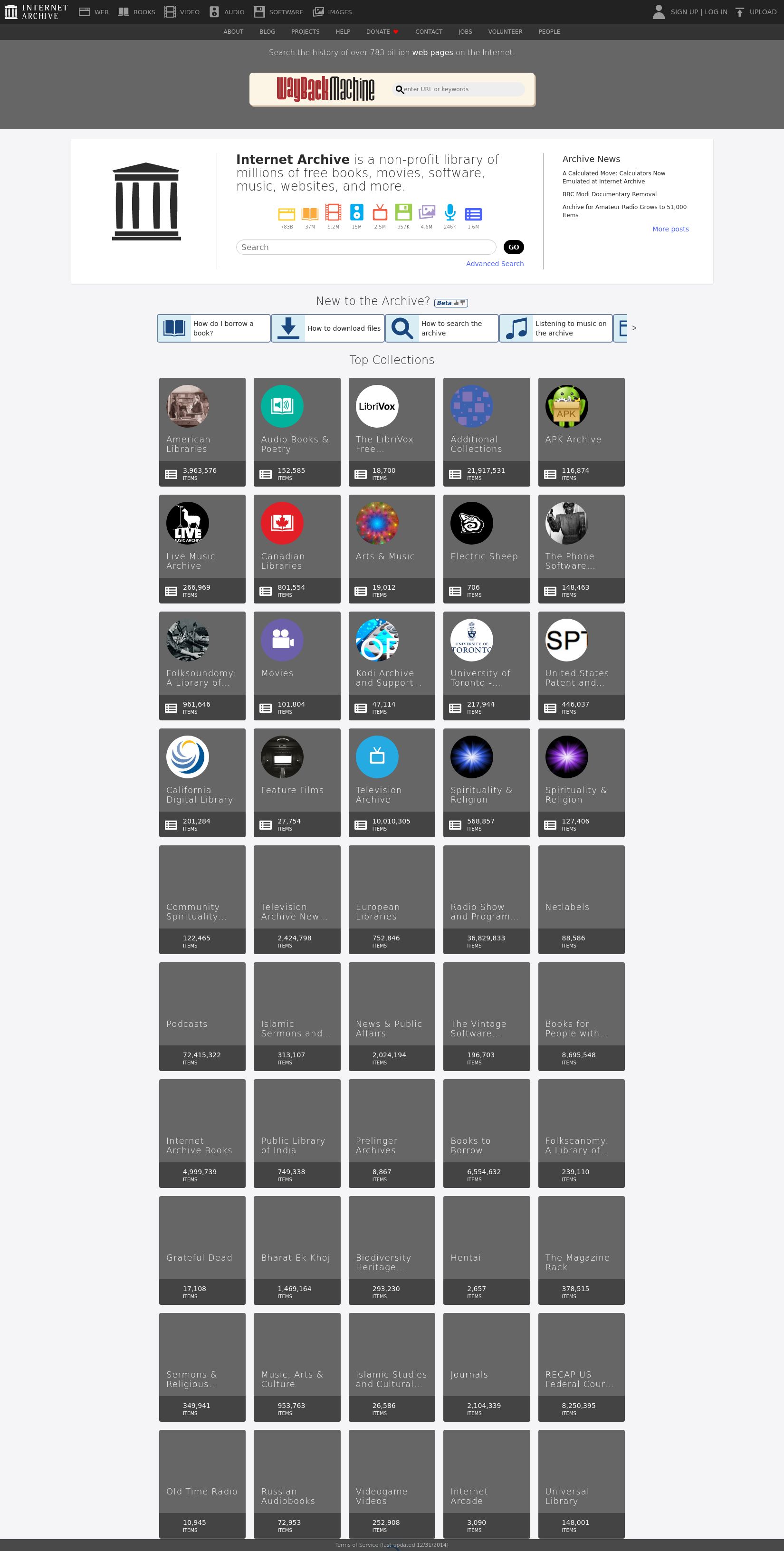 Um enorme arquivo de livros, filmes, música, software e muito mais.