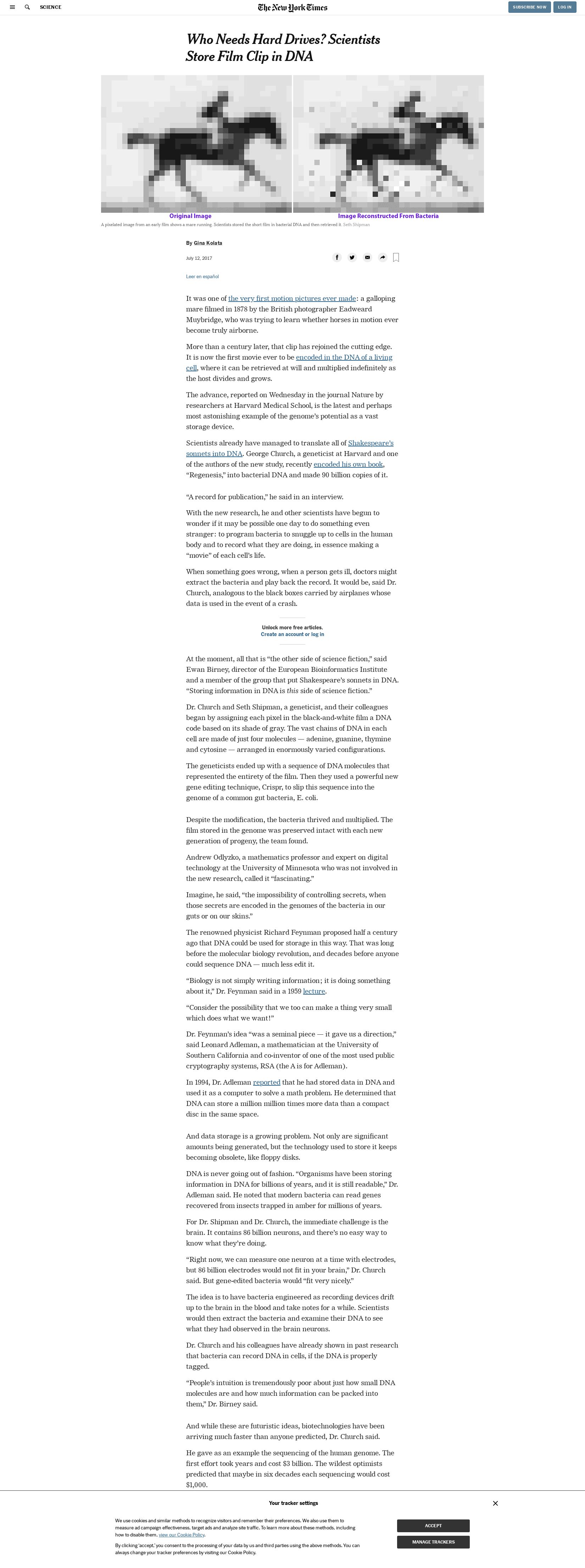 In a first, researchers converted a movie into a DNA sequence and inserted it into bacteria. They hope to someday use the...