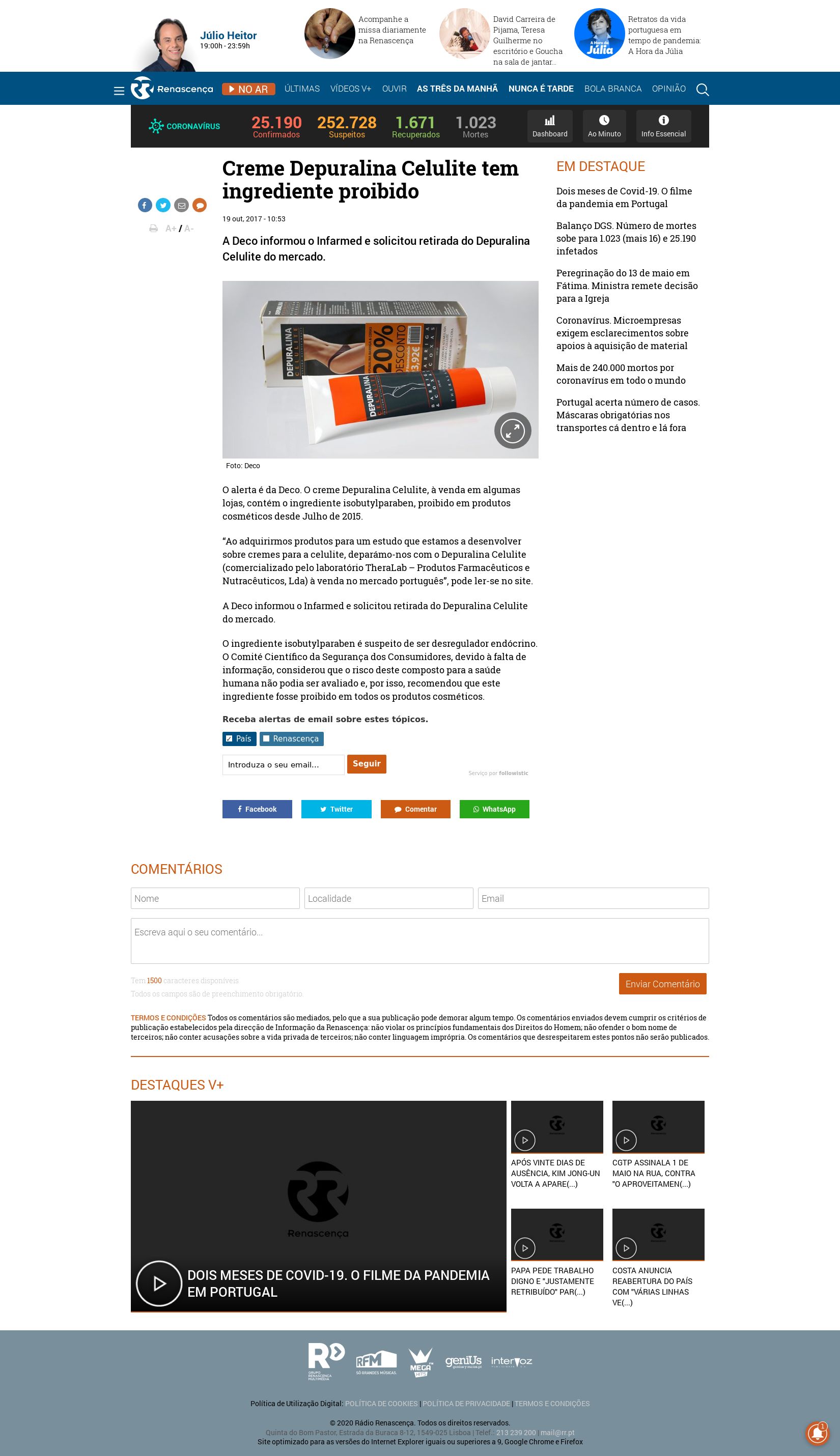 A Deco informou o Infarmed e solicitou retirada do Depuralina Celulite do mercado.