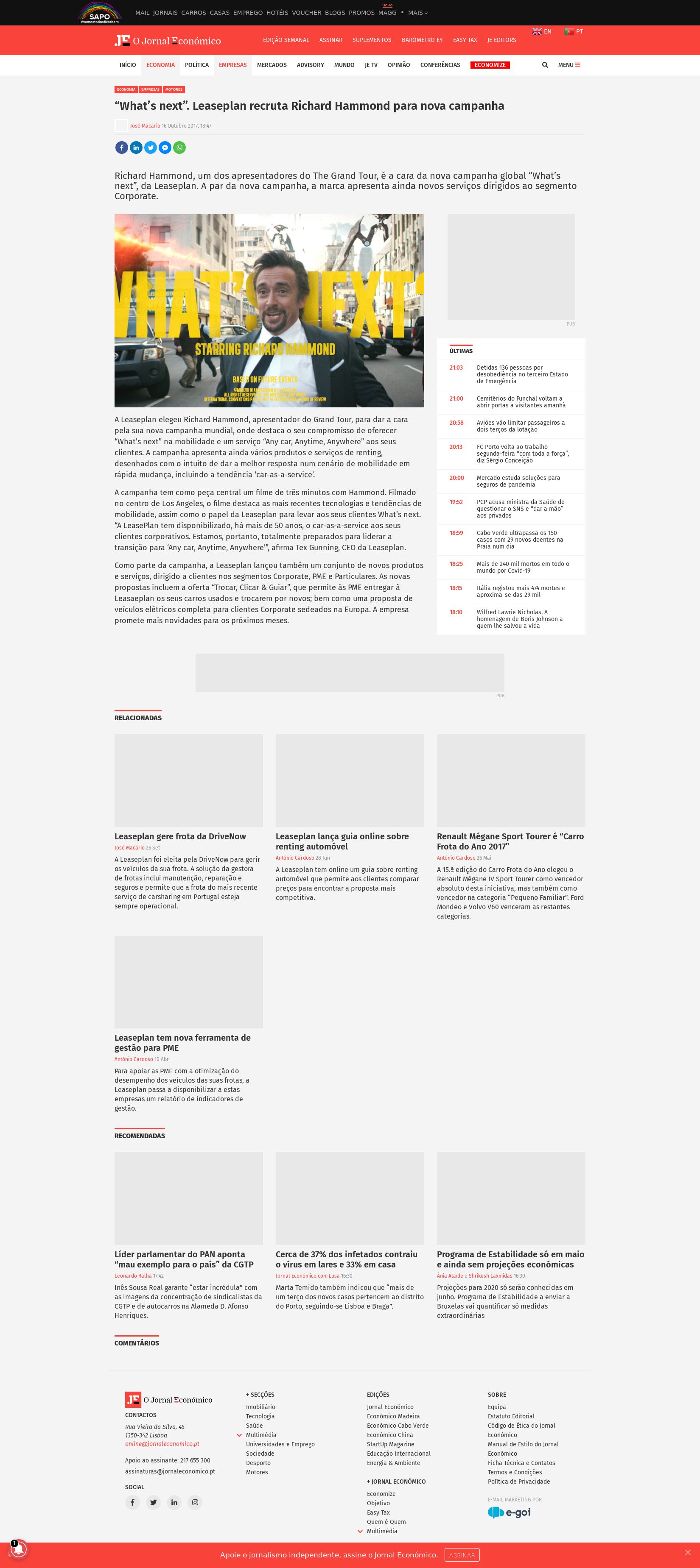 Richard Hammond, um dos apresentadores do The Grand Tour, é a cara da nova campanha global âWhatâs nextâ, da Leasepl...