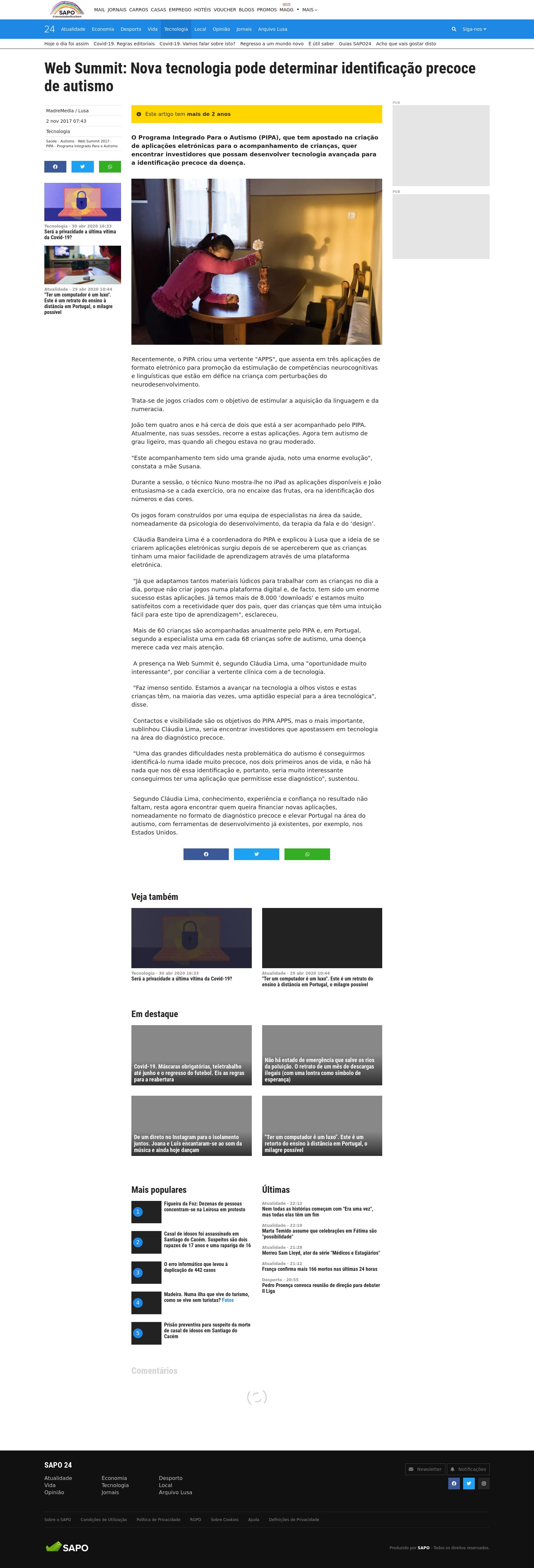 O Programa Integrado Para o Autismo (PIPA), que tem apostado na criação de aplicações eletrónicas para o acompanhamento de c...